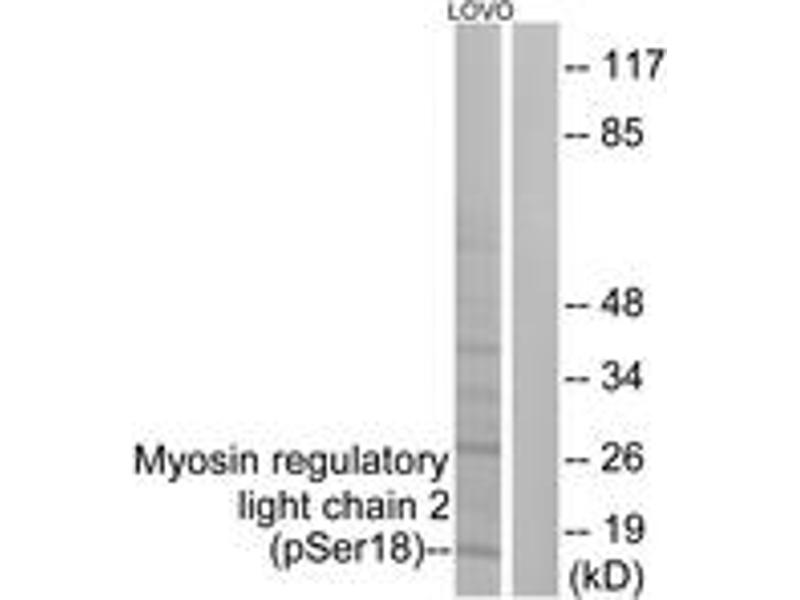 - The antiserum was produced against synthesized peptide derived from human Myosin regulatory light chain 2 around the phosphorylation site of Ser18.