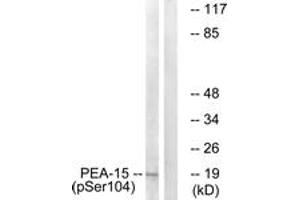 PEA-15 (Phospho-Ser104) Antibody detects endogenous levels of PEA-15 only when phosphorylated at Ser104.