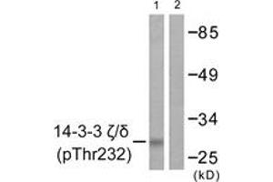 14-3-3 zeta/delta (Phospho-Thr232) Antibody detects endogenous levels of 14-3-3 zeta/delta only when phosphorylated at Thr232.