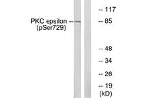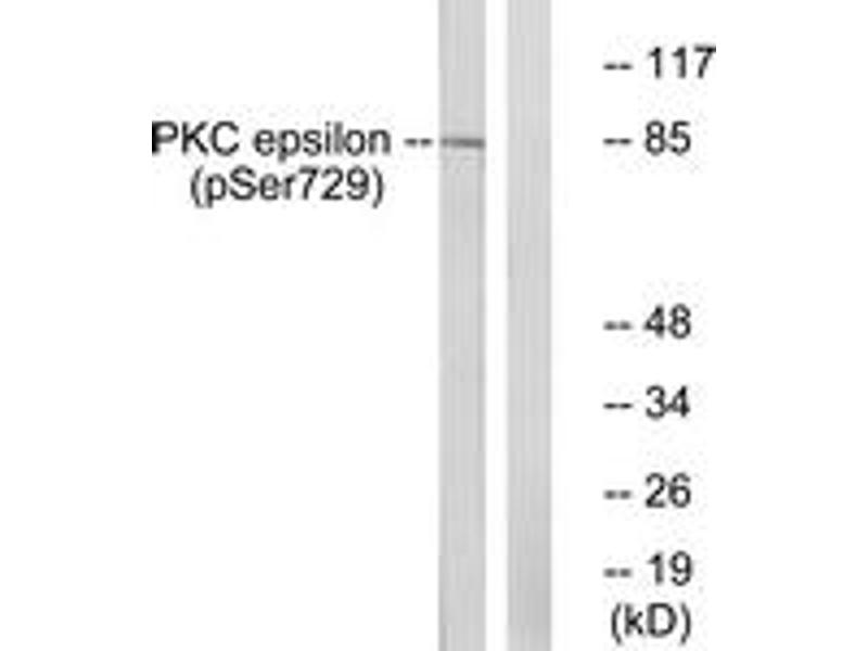 PKC epsilon (Phospho-Ser729) Antibody detects endogenous levels of PKC epsilon only when phosphorylated at Ser729.