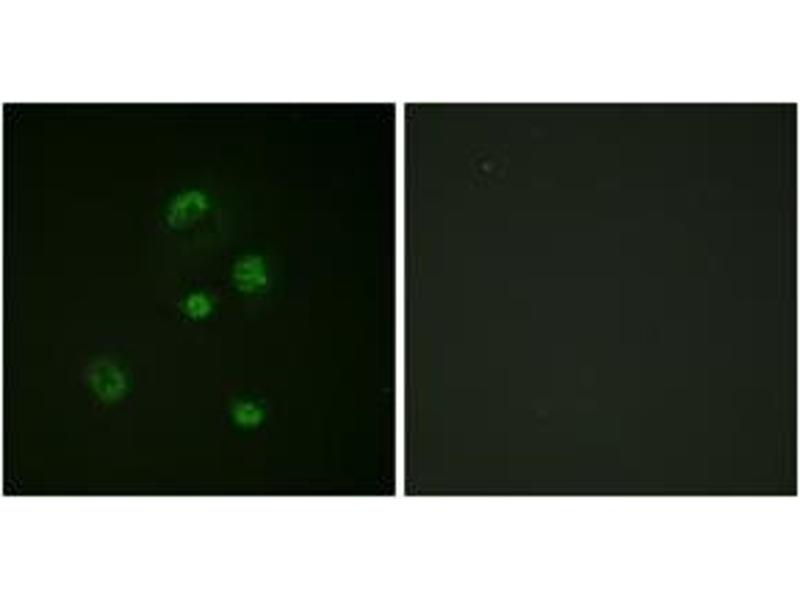 The antibody was purified from rabbit antiserum by affinity-chromatography using phospho peptide. The antibody against non-phospho peptide was removed by chromatography using corresponding non-phospho peptide.