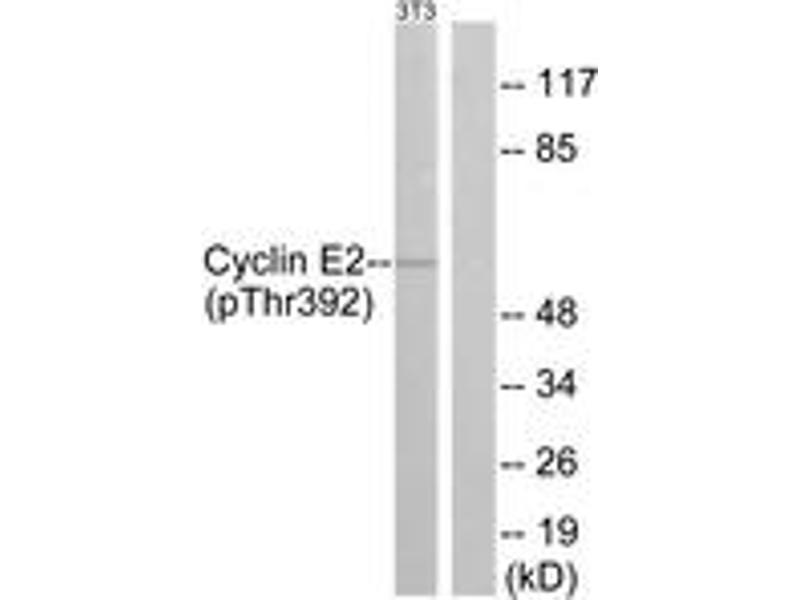 Cyclin E2 (Phospho-Thr392) Antibody detects endogenous levels of Cyclin E2 only when phosphorylated at Thr392.