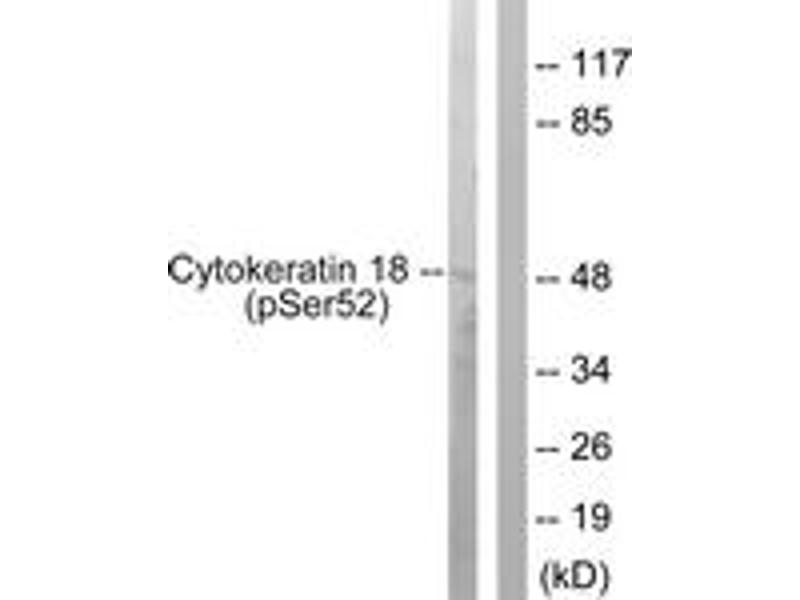 - The antiserum was produced against synthesized peptide derived from human Keratin 18 around the phosphorylation site of Ser52.