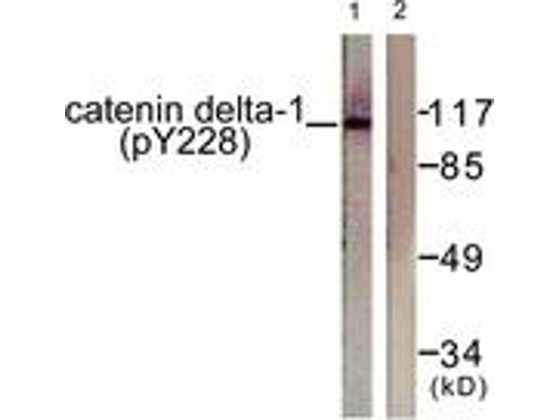 Catenin-delta1 (Phospho-Tyr228) Antibody detects endogenous levels of Catenin-delta1 only when phosphorylated at Tyr228.