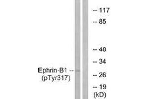 EFNB1 (Phospho-Tyr317) Antibody detects endogenous levels of EFNB1 only when phosphorylated at Tyr317.