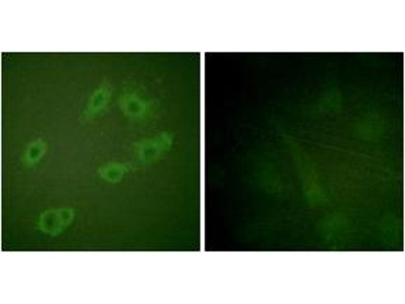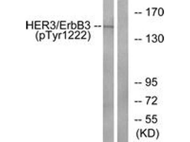 HER3 (Phospho-Tyr1222) Antibody detects endogenous levels of HER3 only when phosphorylated at Tyr1222.