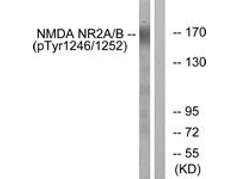 NMDAR2A/B (Phospho-Tyr1246/1252) Antibody detects endogenous levels of NMDAR2A/B only when phosphorylated at Tyr1246/1252.