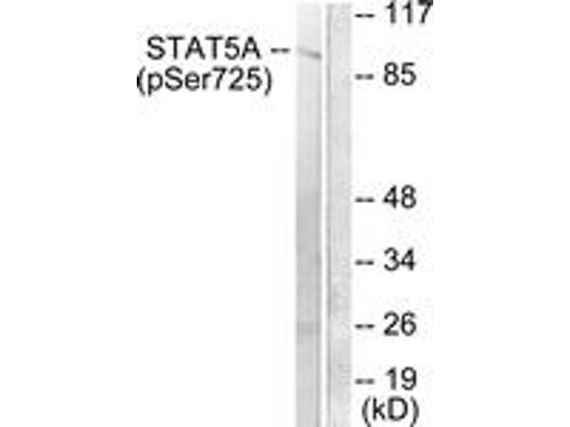 - The antiserum was produced against synthesized peptide derived from human STAT5A/B around the phosphorylation site of Ser725/730.