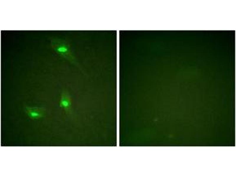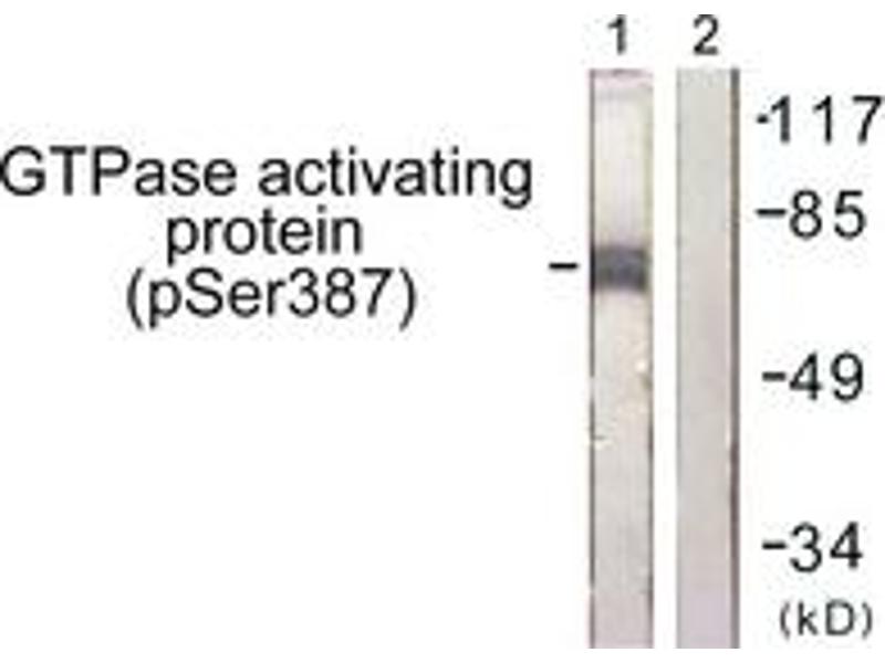 GTPase Activating Protein (Phospho-Ser387) Antibody detects endogenous levels of GTPase Activating Protein only when phosphorylated at Ser387.