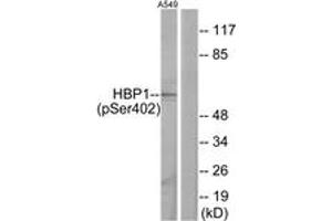 HBP1 (Phospho-Ser402) Antibody detects endogenous levels of HBP1 only when phosphorylated at Ser402.