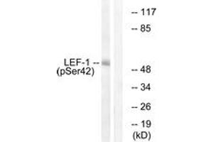 LEF-1 (Phospho-Ser42) Antibody detects endogenous levels of LEF-1 only when phosphorylated at Ser42.