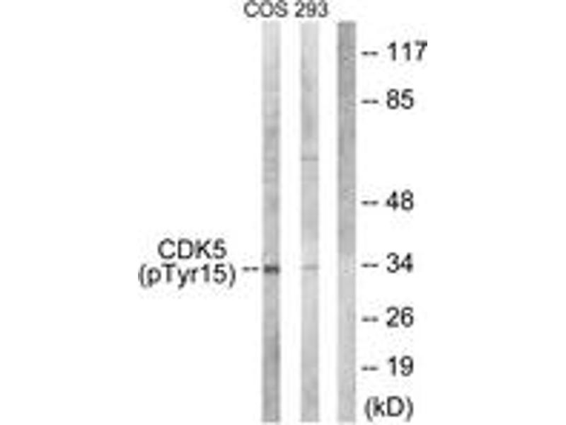 - The antiserum was produced against synthesized peptide derived from human CDK5 around the phosphorylation site of Tyr15.