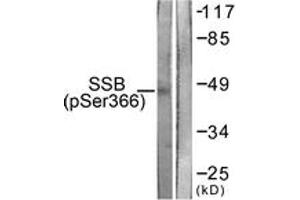 SSB (Phospho-Ser366) Antibody detects endogenous levels of SSB only when phosphorylated at Ser366.