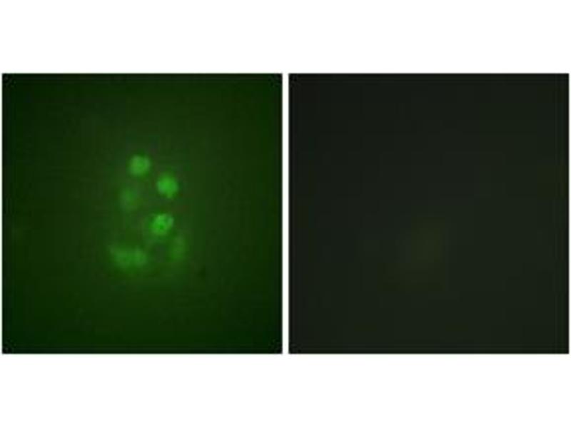 The antibody was purified from rabbit antiserum by affinity-chromatography using phospho peptide. The antibody against non-phospho peptide was removed by chromatography using corresponding non-phospho peptide.