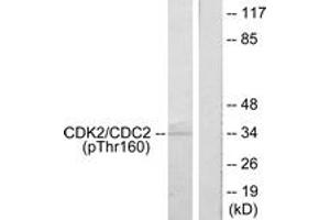 CDK2 (Phospho-Thr160) Antibody detects endogenous levels of CDK2 only when phosphorylated at Thr160.