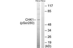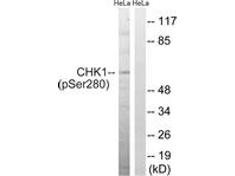 Chk1 (Phospho-Ser280) Antibody detects endogenous levels of Chk1 only when phosphorylated at Ser280.
