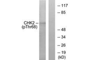 - The antiserum was produced against synthesized peptide derived from human Chk2 around the phosphorylation site of Thr68.