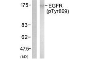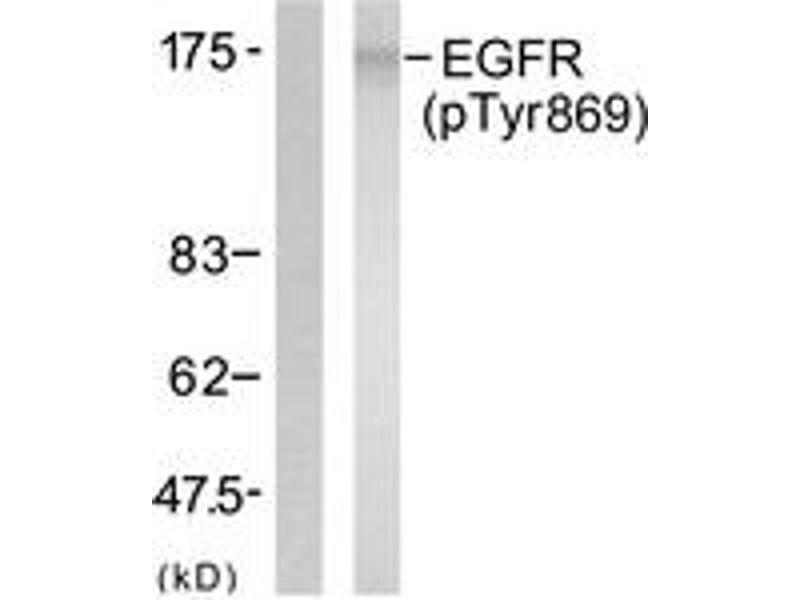 EGFR (Phospho-Tyr869) Antibody detects endogenous levels of EGFR only when phosphorylated at Tyr869.
