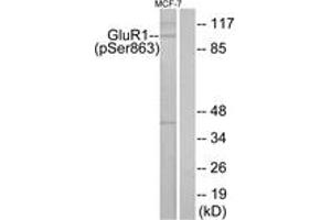 GluR1 (Phospho-Ser863) Antibody detects endogenous levels of GluR1 only when phosphorylated at Ser863.