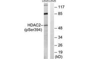 HDAC2 (Phospho-Ser394) Antibody detects endogenous levels of HDAC2 only when phosphorylated at Ser394.