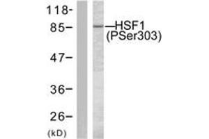 HSF1 (Phospho-Ser303) Antibody detects endogenous levels of HSF1 only when phosphorylated at Ser303.