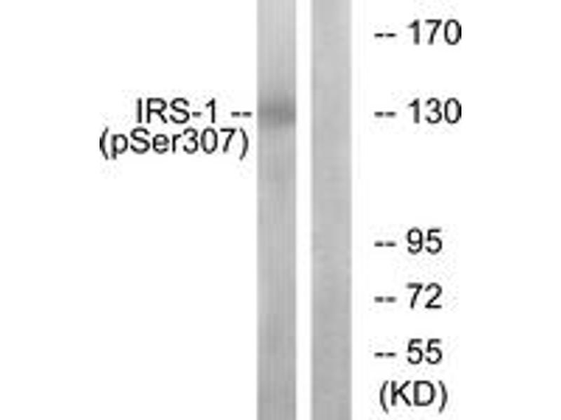 IRS-1 (Phospho-Ser307) Antibody detects endogenous levels of IRS-1 only when phosphorylated at Ser307.