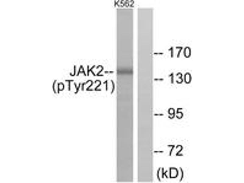 JAK2 (Phospho-Tyr221) Antibody detects endogenous levels of JAK2 only when phosphorylated at Tyr221.