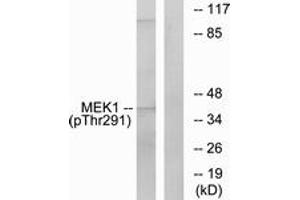 - The antiserum was produced against synthesized peptide derived from human MEK1 around the phosphorylation site of Thr291.