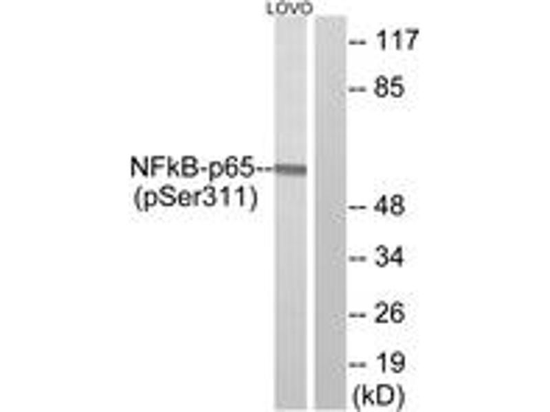 NF-kappaB p65 (Phospho-Ser311) Antibody detects endogenous levels of NF-kappaB p65 only when phosphorylated at Ser311.