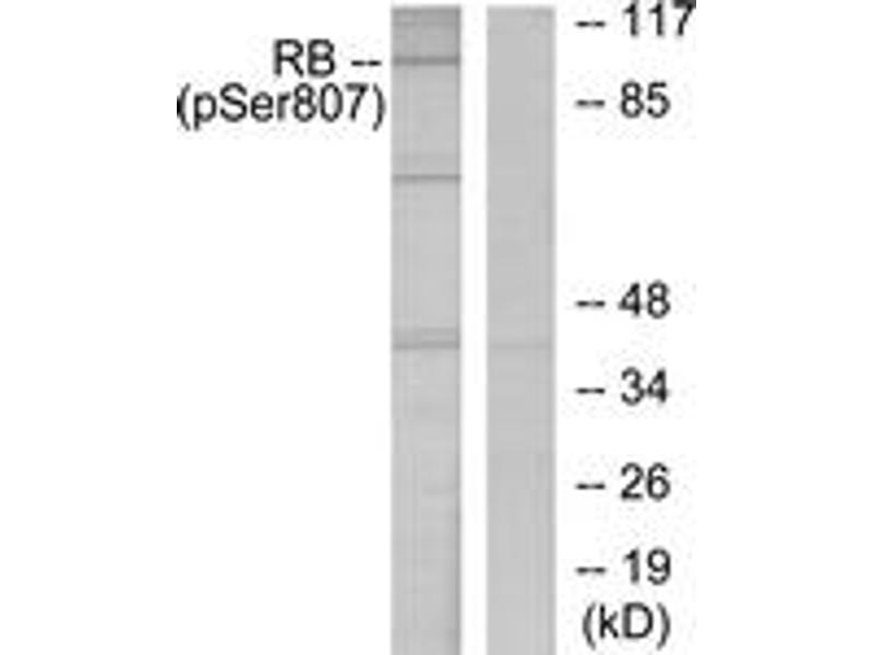 Retinoblastoma (Phospho-Ser807) Antibody detects endogenous levels of Retinoblastoma only when phosphorylated at Ser807.