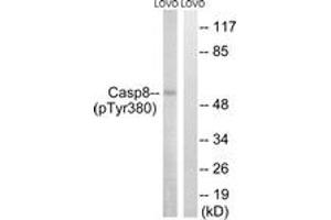 Caspase 8 (Phospho-Tyr380) Antibody detects endogenous levels of Caspase 8 only when phosphorylated at Tyr380.