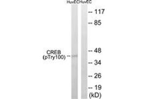 CREB (Phospho-Thr100) Antibody detects endogenous levels of CREB only when phosphorylated at Thr100.