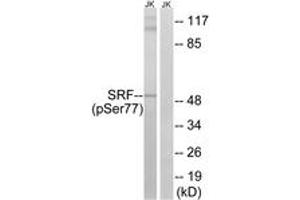 SRF (Phospho-Ser77) Antibody detects endogenous levels of SRF only when phosphorylated at Ser77.