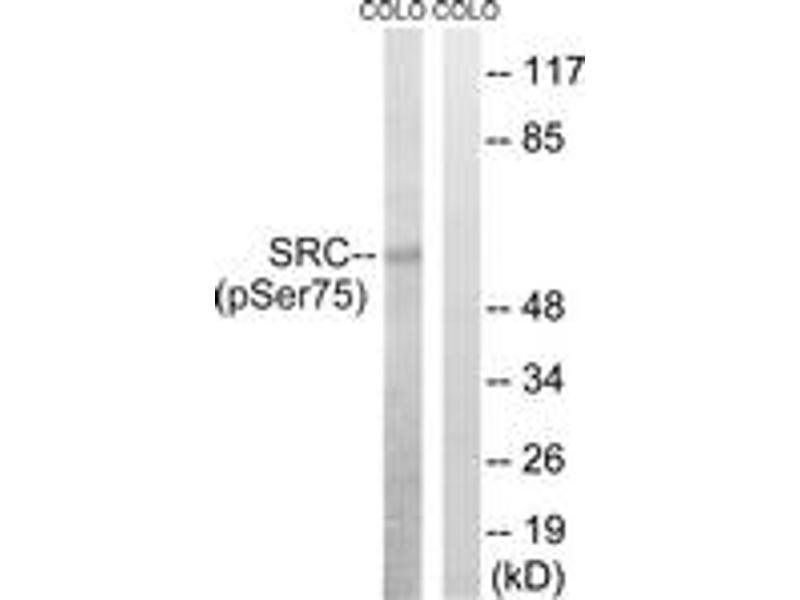 Src (Phospho-Ser75) Antibody detects endogenous levels of Src only when phosphorylated at Ser75.