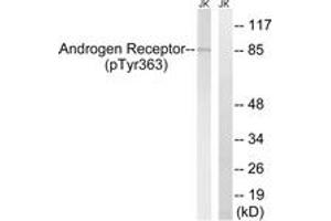 Androgen Receptor (Phospho-Tyr363) Antibody detects endogenous levels of Androgen Receptor only when phosphorylated at Tyr363.