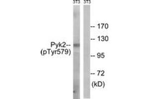 PYK2 (Phospho-Tyr579) Antibody detects endogenous levels of PYK2 only when phosphorylated at Tyr579.