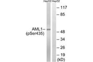 AML1 (Phospho-Ser435) Antibody detects endogenous levels of AML1 only when phosphorylated at Ser435.