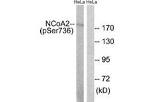 NCoA2 (Phospho-Ser736) Antibody detects endogenous levels of NCoA2 only when phosphorylated at Ser736.
