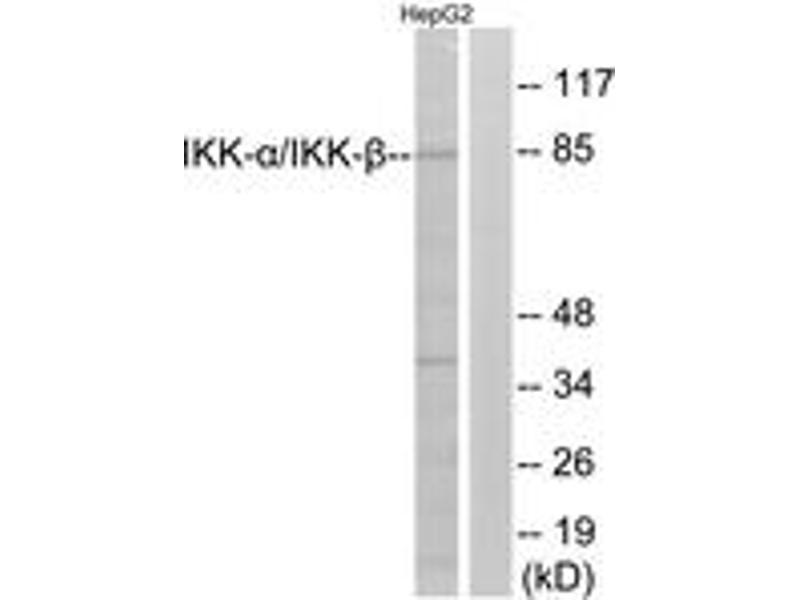 - The antiserum was produced against synthesized peptide derived from human IKK-alpha/beta.