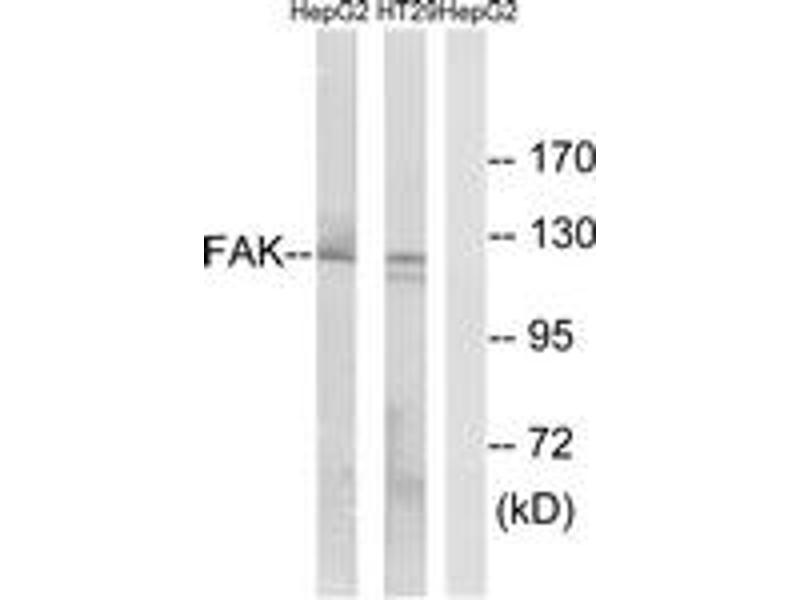 FAK Antibody detects endogenous levels of total FAK protein.