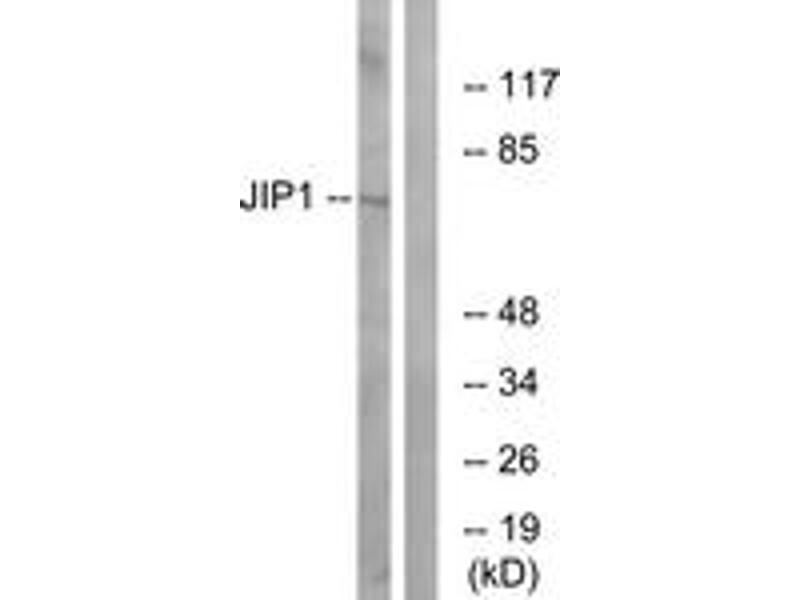 JIP1 Antibody detects endogenous levels of total JIP1 protein.