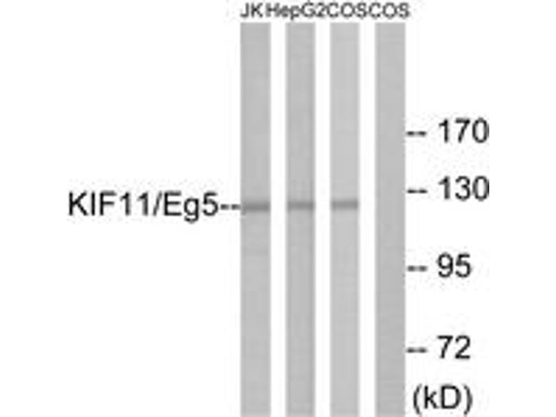 KIF11/Eg5 Antibody detects endogenous levels of total KIF11/Eg5 protein.