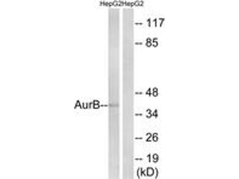 - The antiserum was produced against synthesized peptide derived from human AurB.