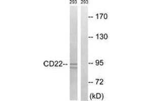 Synonyms: B-cell receptor CD22, B-lymphocyte cell adhesion molecule, BL-CAM, Leu-14, Siglec-2