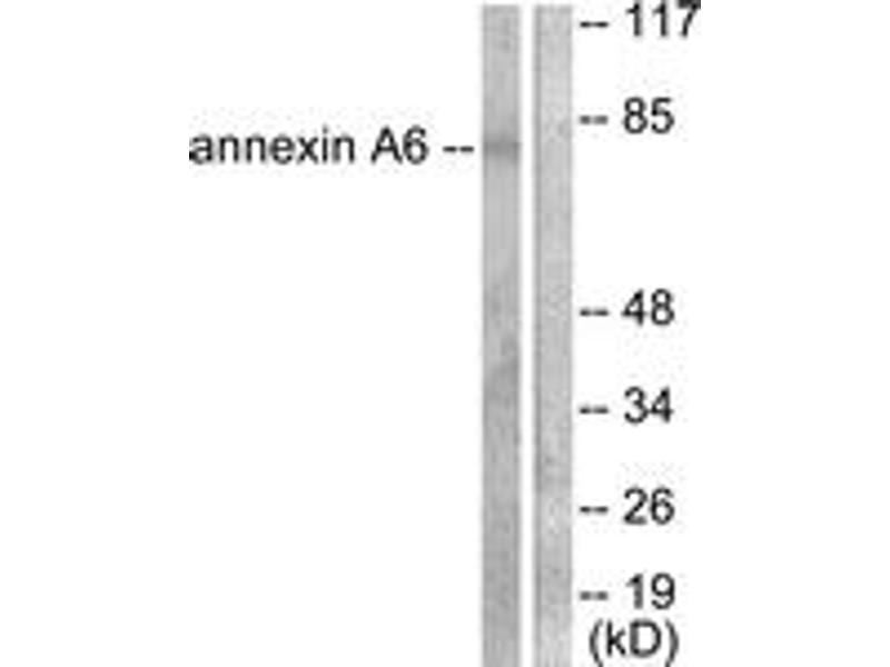 Annexin A6 Antibody detects endogenous levels of total Annexin A6 protein.