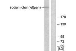 Sodium Channel-pan Antibody detects endogenous levels of total Sodium Channel protein.