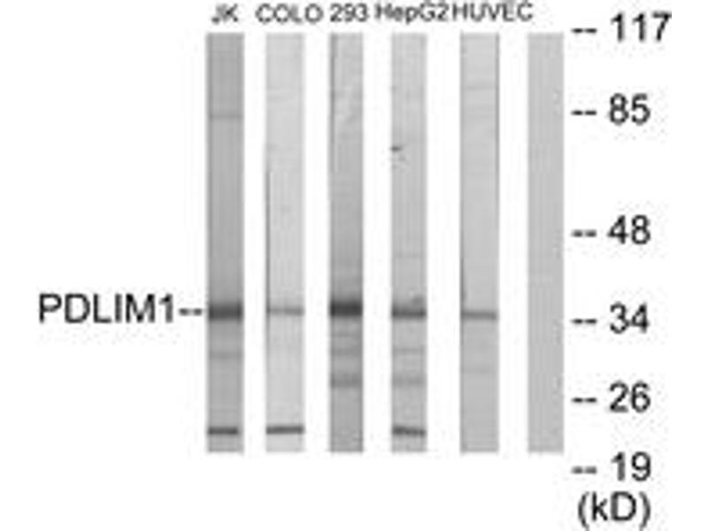 PDLIM1 Antibody detects endogenous levels of total PDLIM1 protein.