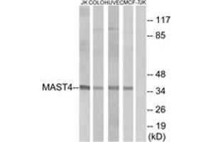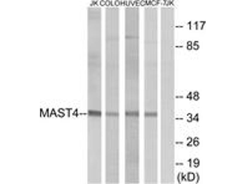 - The antiserum was produced against synthesized peptide derived from human MAST4.