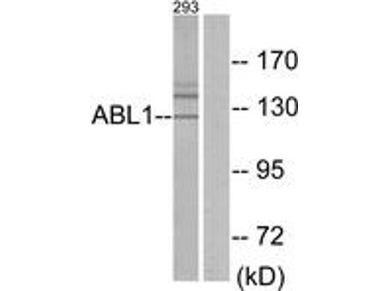 ABL1 Antibody detects endogenous levels of total ABL1 protein.