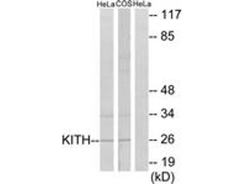 - The antiserum was produced against synthesized peptide derived from human KITH.